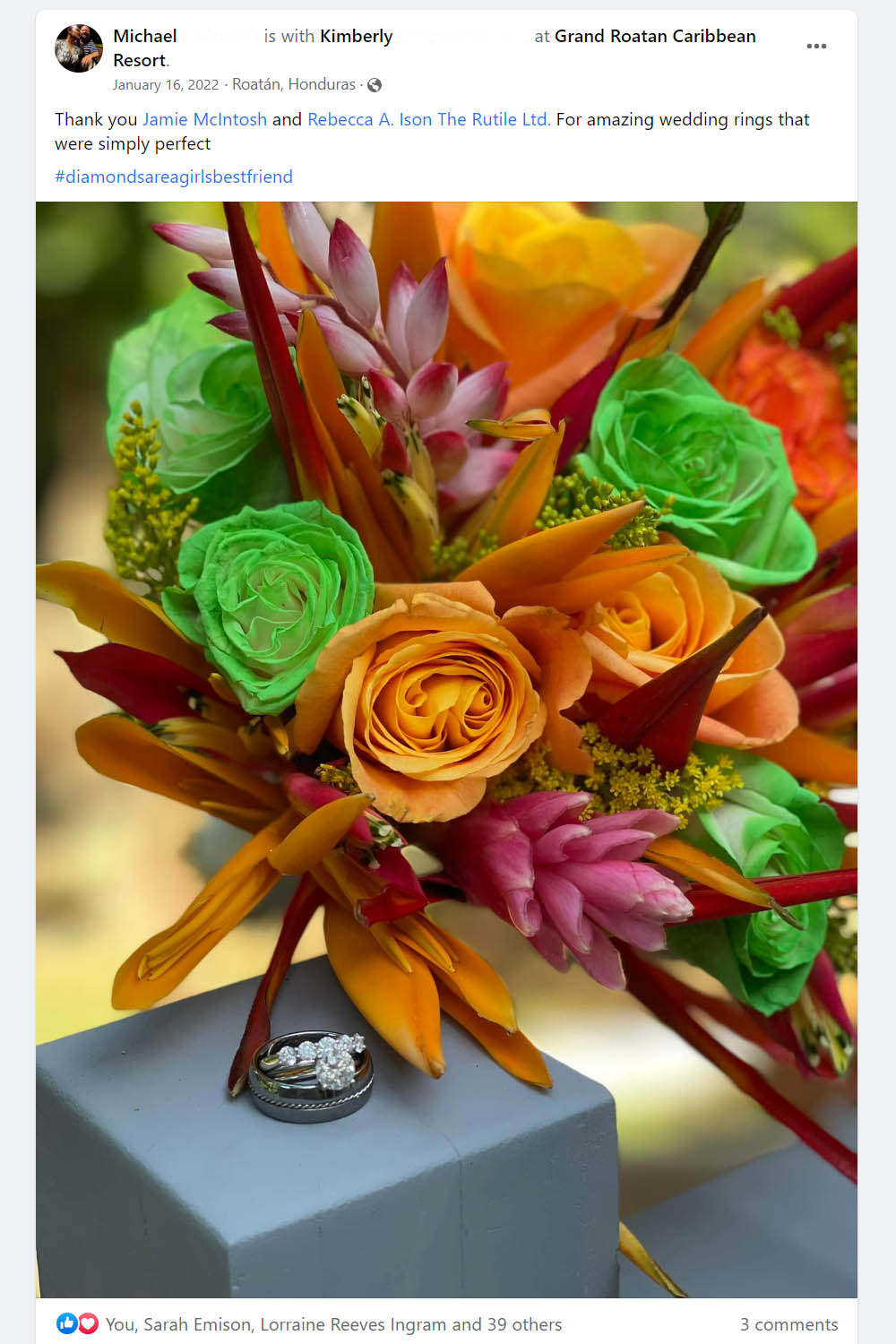 The beauty of our business is that we're truly a small business. We do not have people coming and going in a storefront as we're a private concierge jeweler and we don't have employees, it's just Rebecca and Jamie! Any questions or concerns, you won't need to worry about things getting lost in translation.