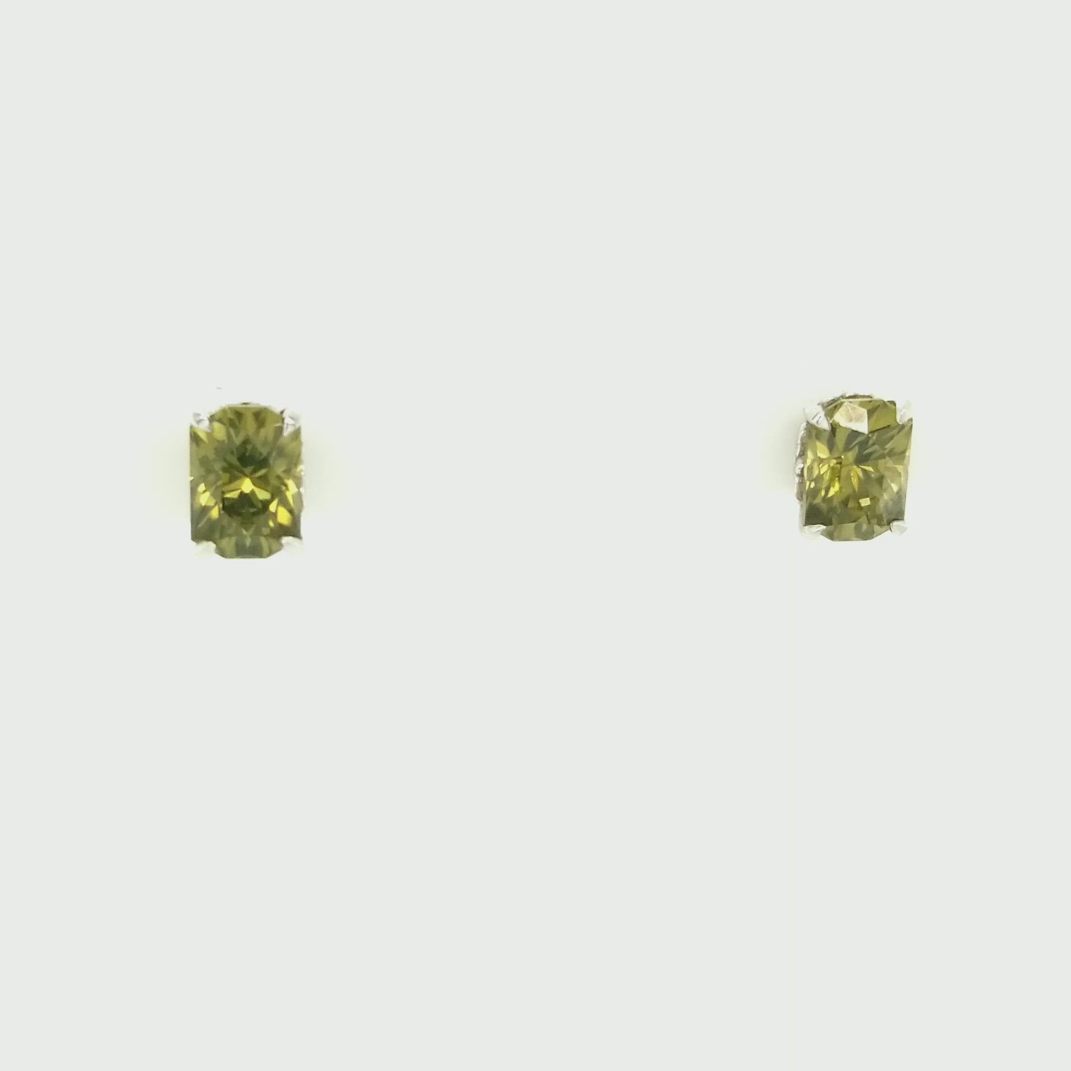 "The Golden" - Extremely Rare Golden-Green Master Cut Zircon Platinum Stud Earrings