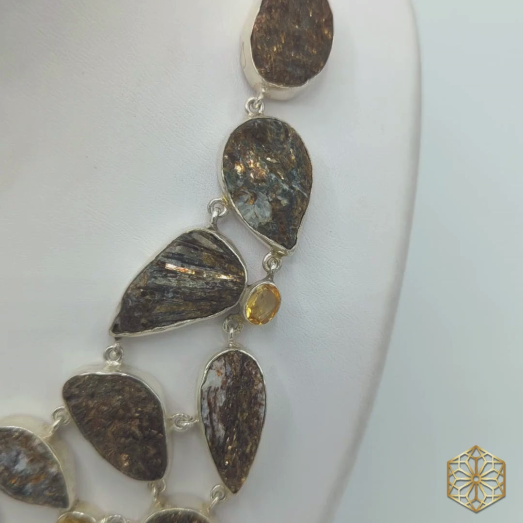 Astrophyllite and Citrine Collar Necklace in Sterling Silver