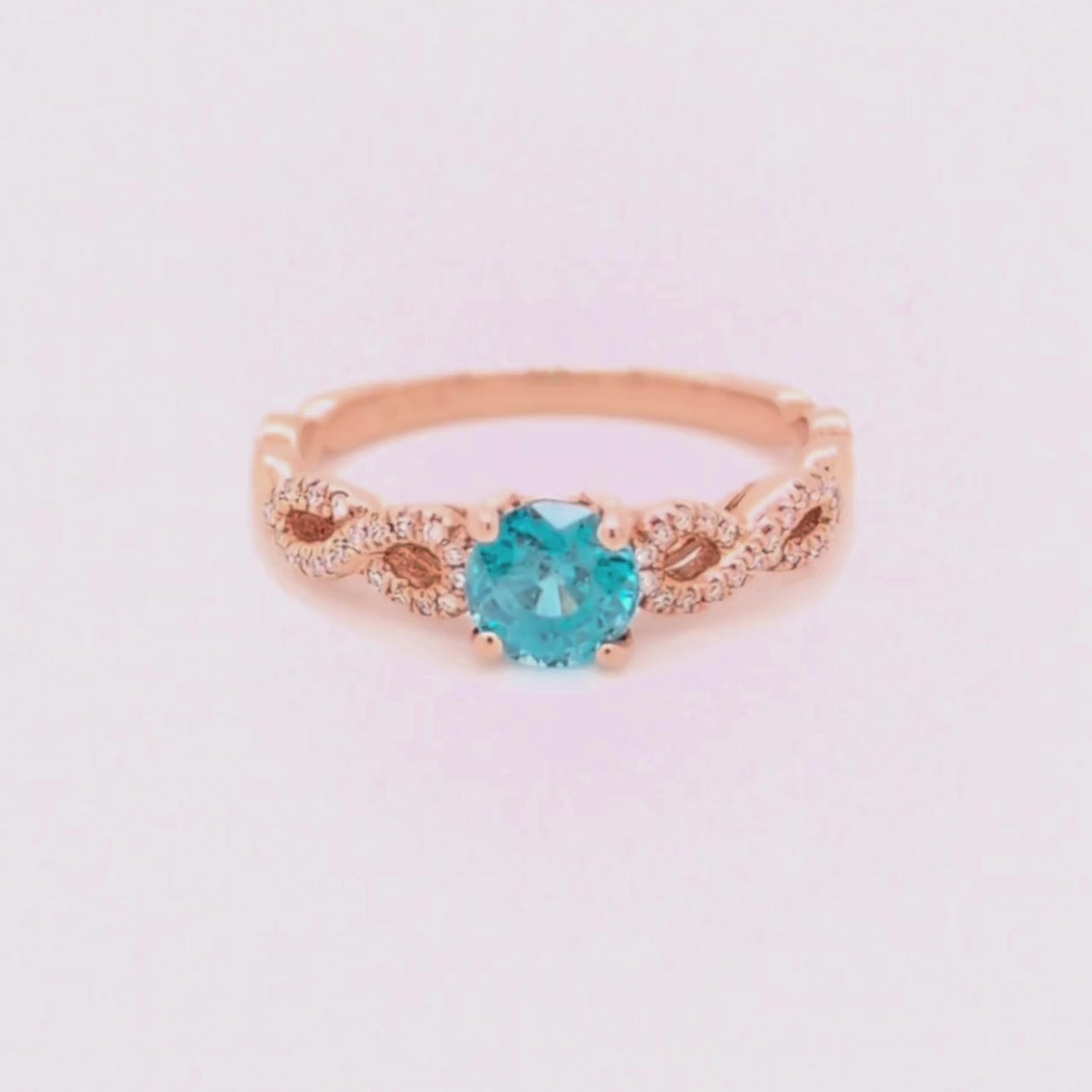 Blue Zircon and Diamond Infinity Ring in 14kt Rose Gold