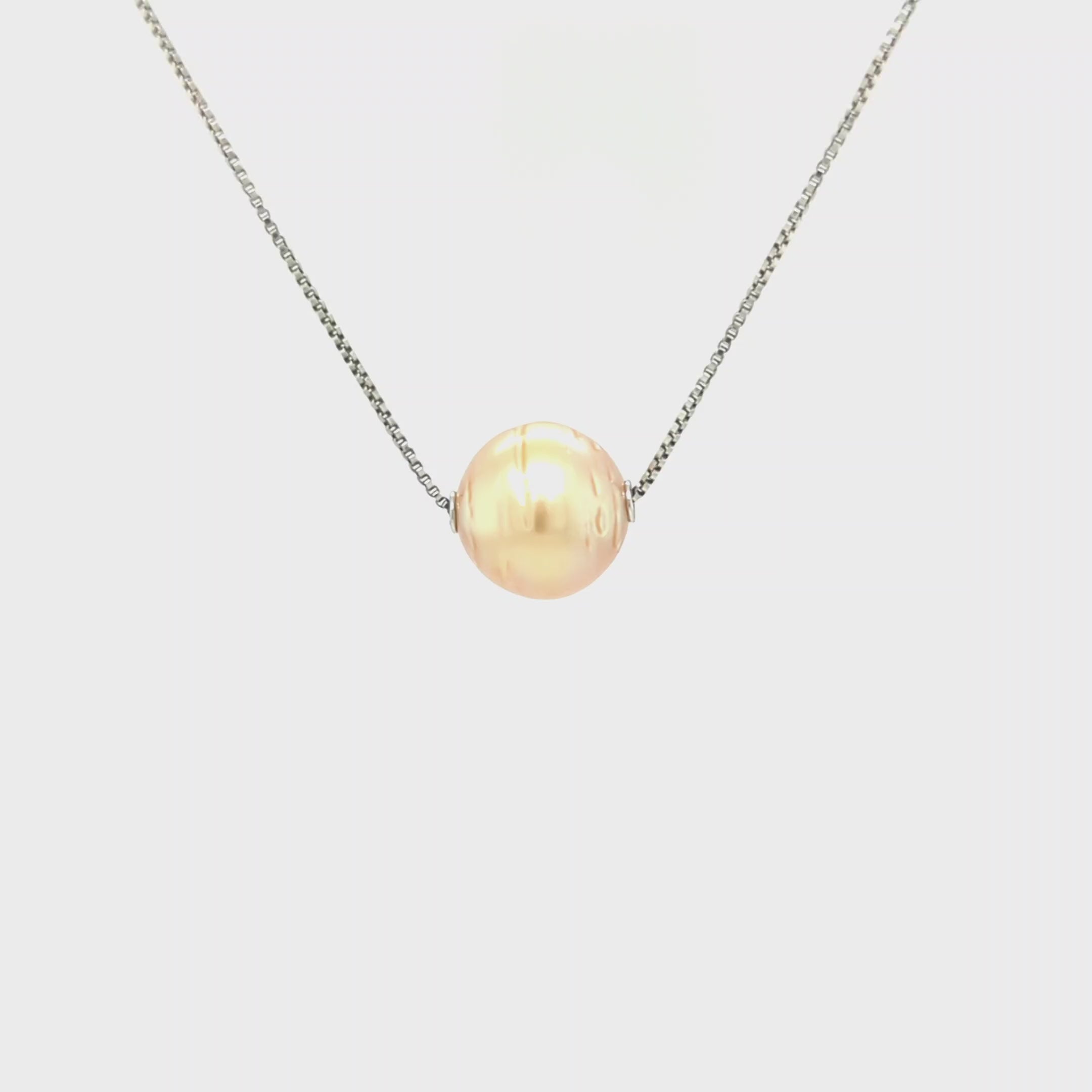 Circled Golden South Sea Pearl on Sterling Silver Chain