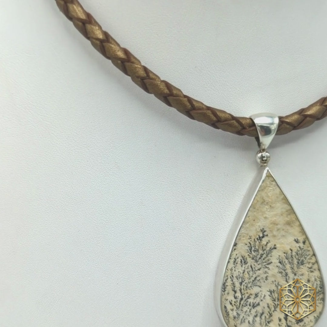 Dendritic Sandstone Pendant in Sterling Silver with 18" Copper Leather Braided Cord