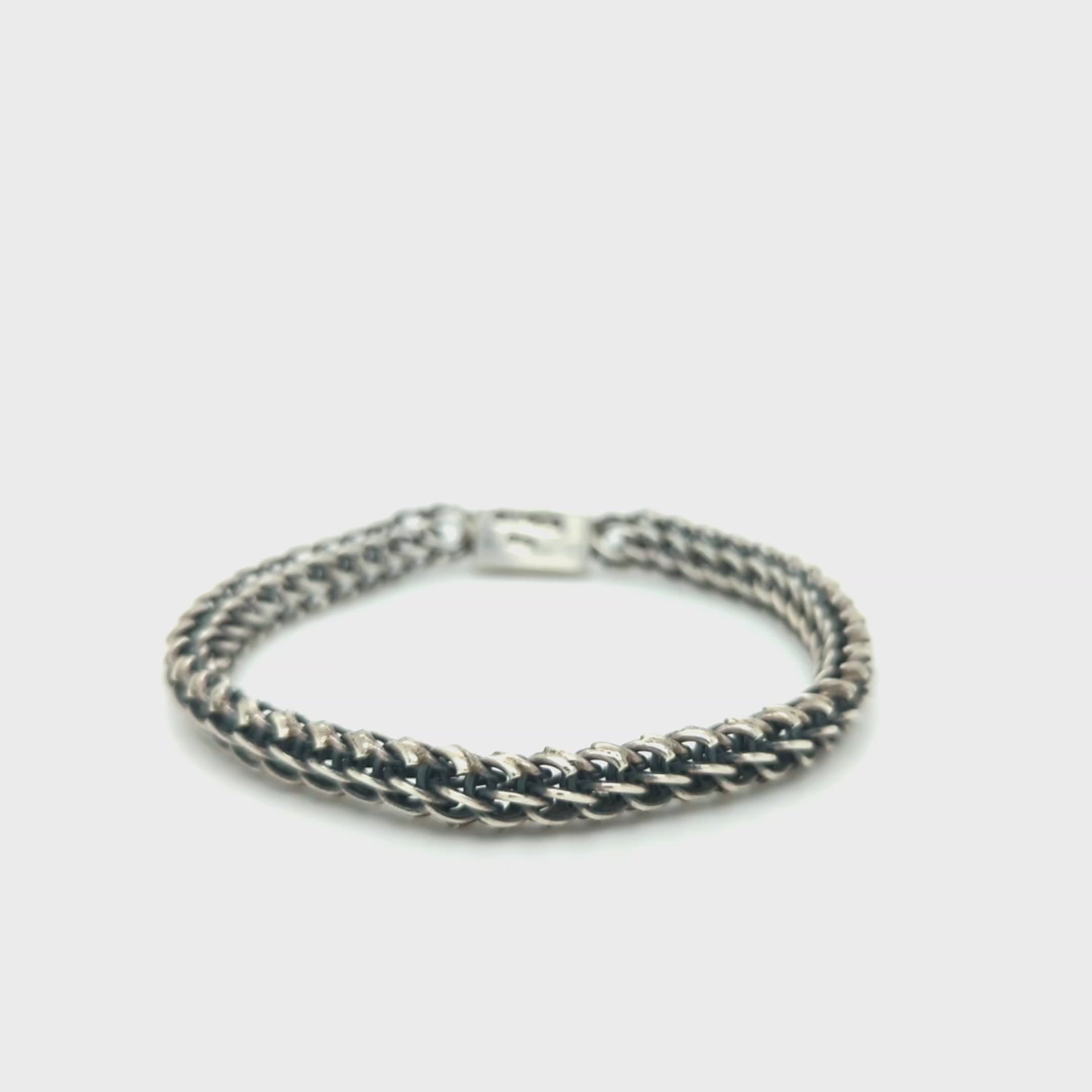 Handmade Woven Mexican Sterling Silver Bracelet - 7.5" long