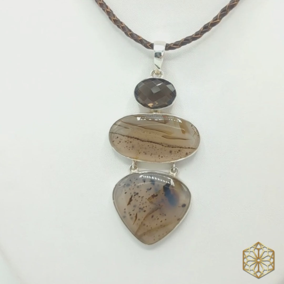 Montana Agate and Smokey Quartz Pendant in Sterling Silver
