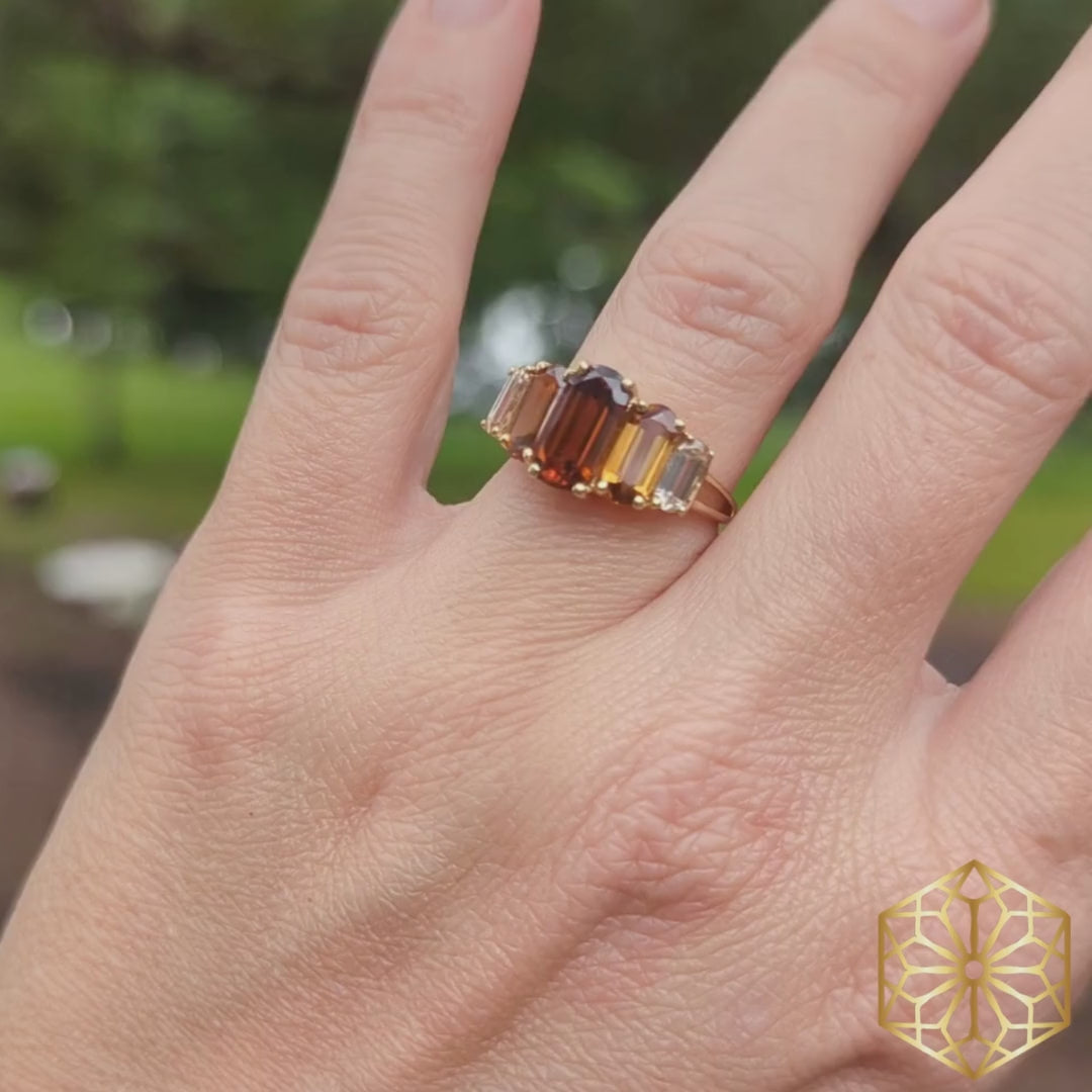 Warm Multi-Colored Step Cut Zircon Ring in 14k Yellow Gold