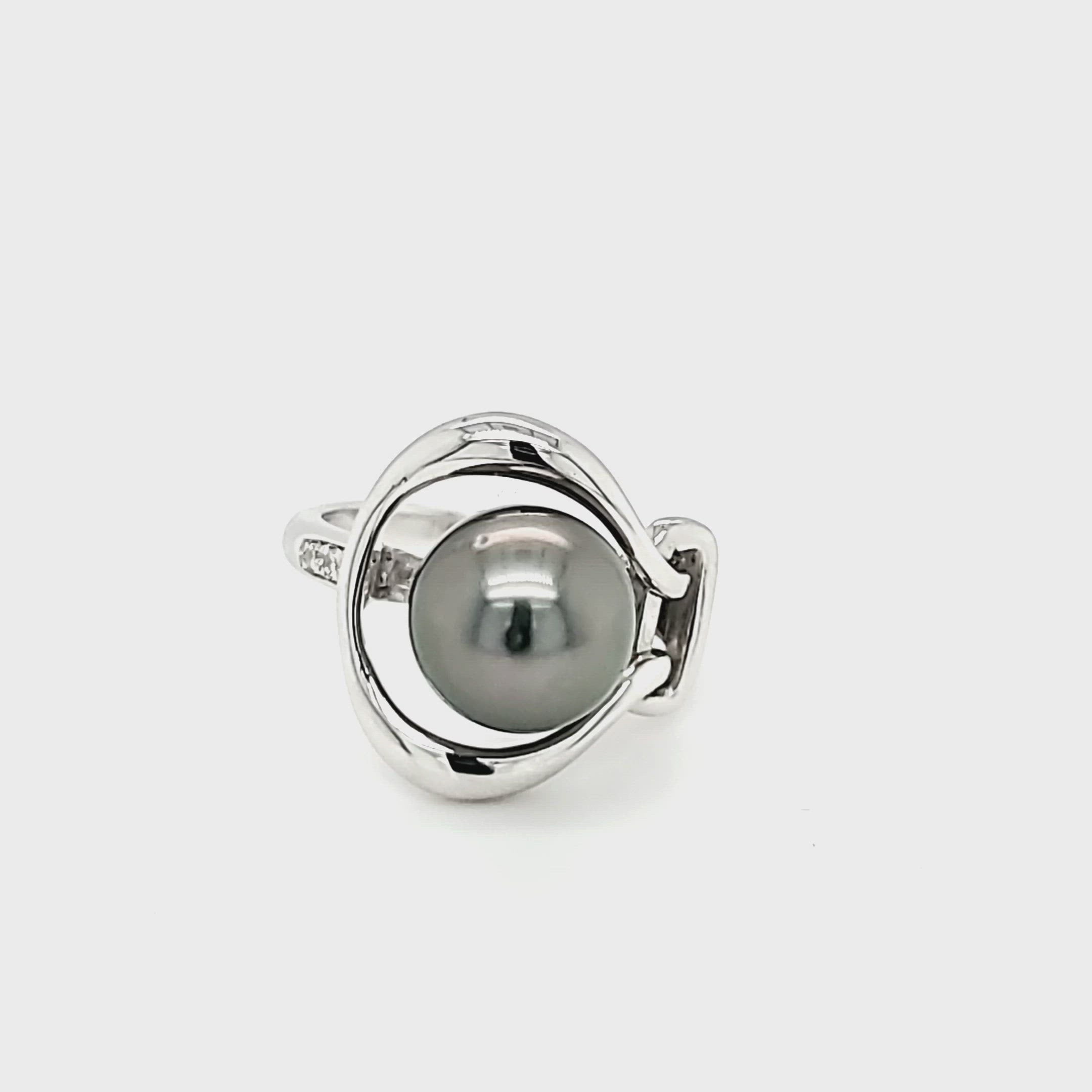 “Perle” - Cultured Tahitian Pearl and White Topaz Sterling Silver Ring