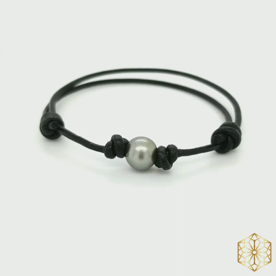 "The Sole" - Single Tahitian Pearl Leather Bracelet