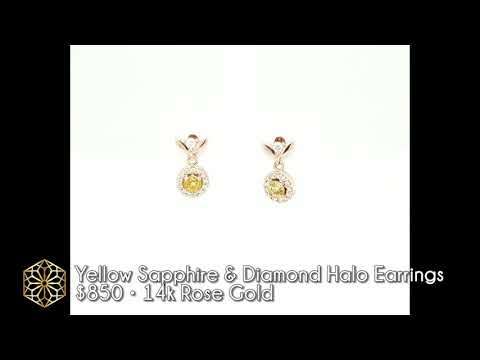 Yellow Sapphire and Diamond Vintage Inspired 14kt Rose Gold Diamond Earrings